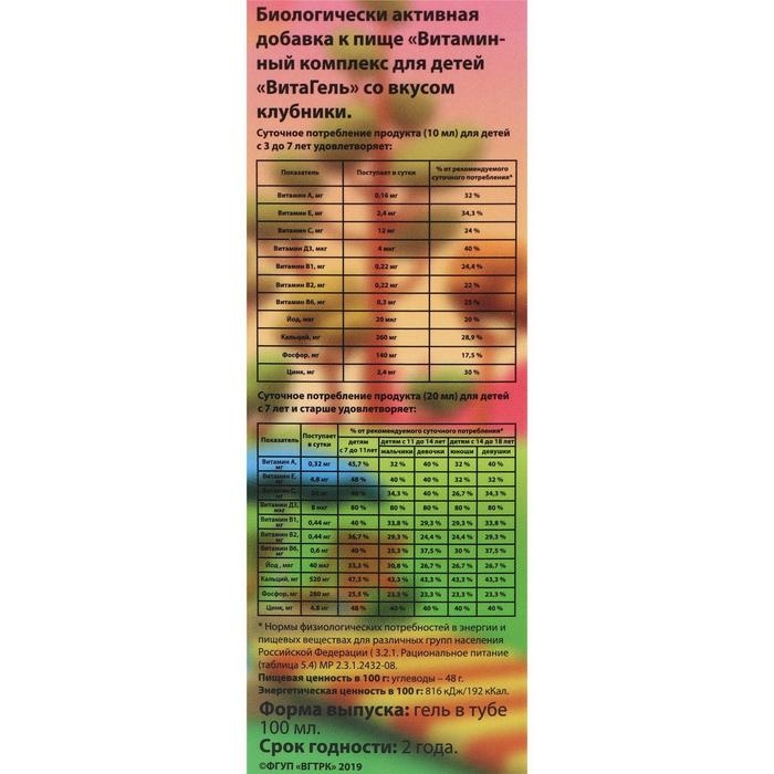 ВитаГель - витаминно-минеральный комплекс для детей с 3х лет, созданный с учетом взаимодействия разных групп витаминов.