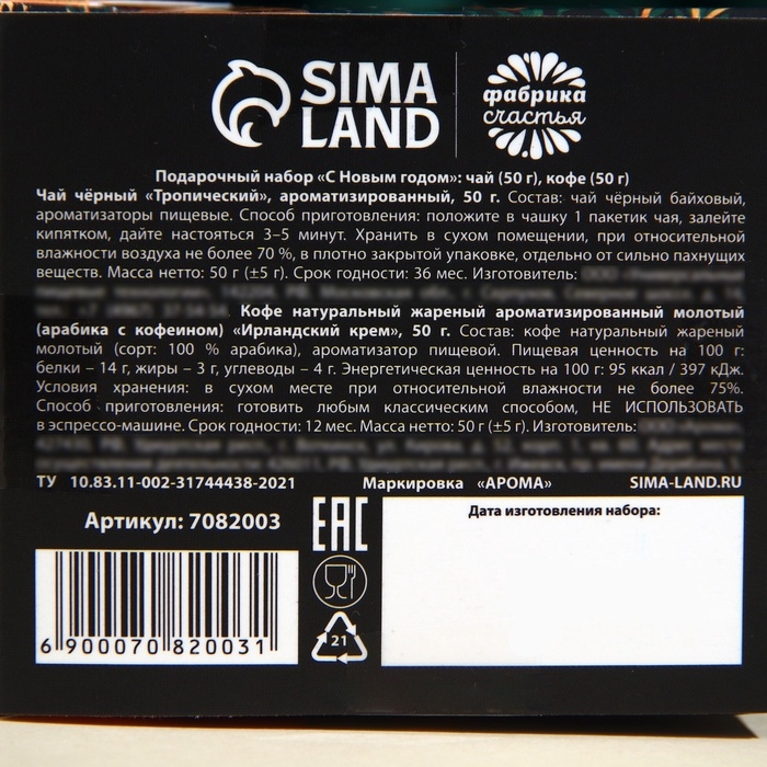 Состав: чай чёрный байховый, ароматизаторы пищевые.