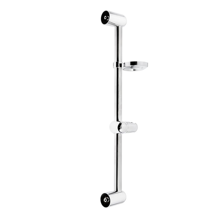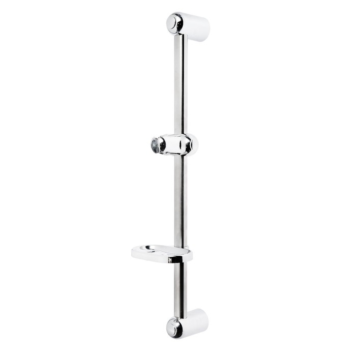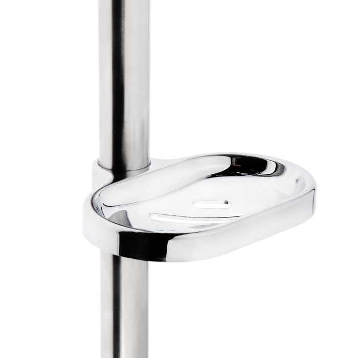 Это вертикальная штанга, на которой установлен кронштейн для ручного душа. Штанга стационарно крепится к стене над ванной при помощи специальных кронштейнов. Модель оснащена удобной пластиковой мыльницей.