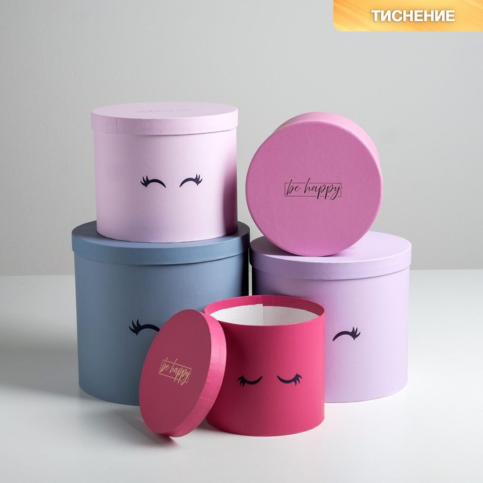 Набор шляпных коробок для цветов 5 в 1, упаковка подарочная, «Глазки», 14 х 13 см - 22 х 19,5 см