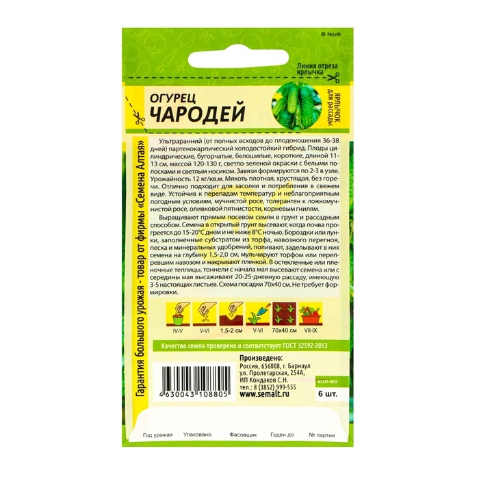Семена Огурец "Чародей", F1, Сем. Алт, ц/п, 6 шт