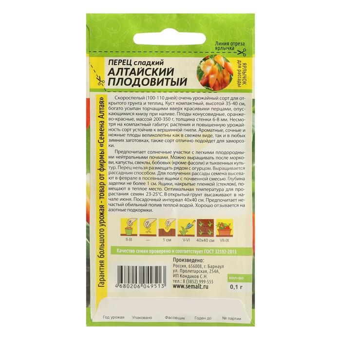 Семена Перец сладкий "Алтайский Плодовитый", Сем. Алт, ц/п, 0,1 г