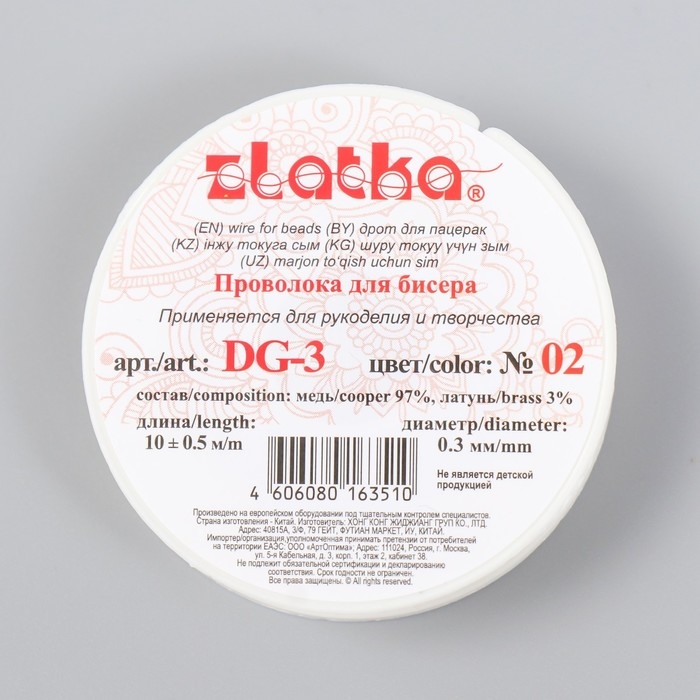 Проволока для бисера "Gamma" d 0.3 мм 10 м ± 0.5 м №02