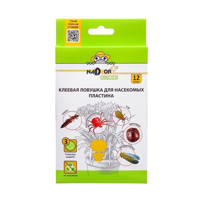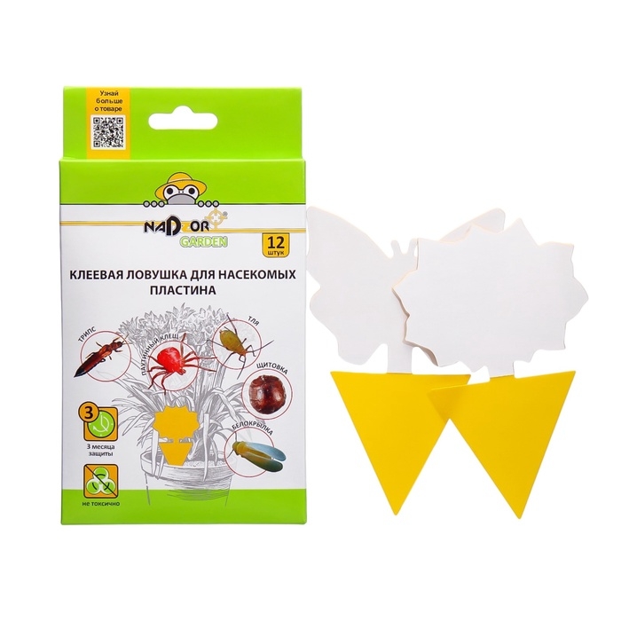 Клеевая ловушка для уничтожения комнатных насекомых - вредителей, путем механического отлова на клеевой слой. Экологически безопасна и простая в применении. Особенностью ловушки является ее желтый цвет и атрактант (аромапривлекатель). Вредители, привлечённые жёлтым цветом и аттрактантом, приклеиваются к ловушке без использования каких-либо ядохимикатов. Основа ловушки – пластик.