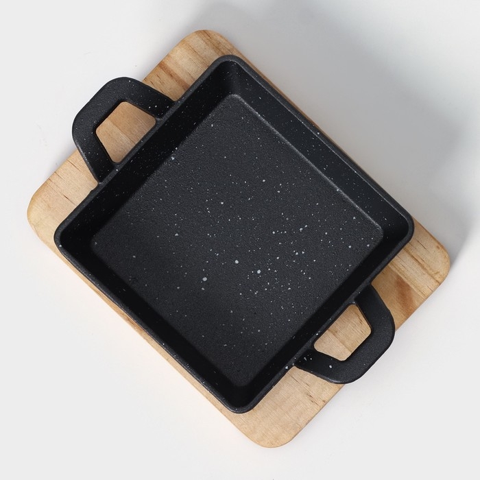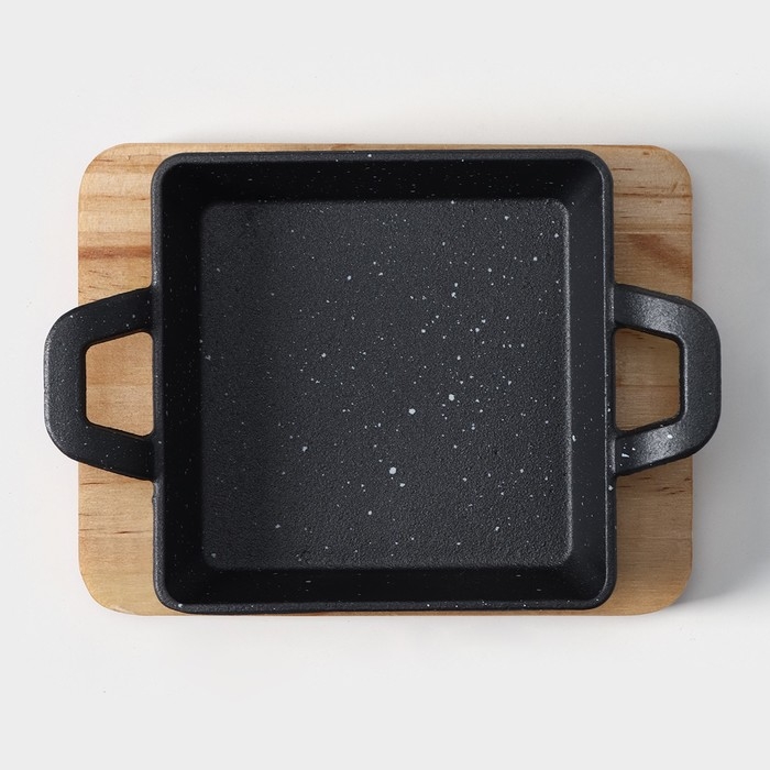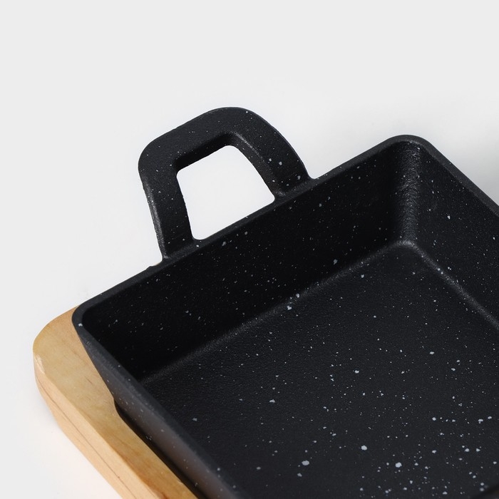 Сковорода чугунная «Ночь», 18,5×12,5×5,2 см, на деревянной подставке