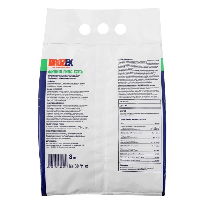 Смесь шпаклевочная Brozex WR 75 БЕЛАЯ ФИНИШ ЦЕМЕНТ для стен 4,0 кг