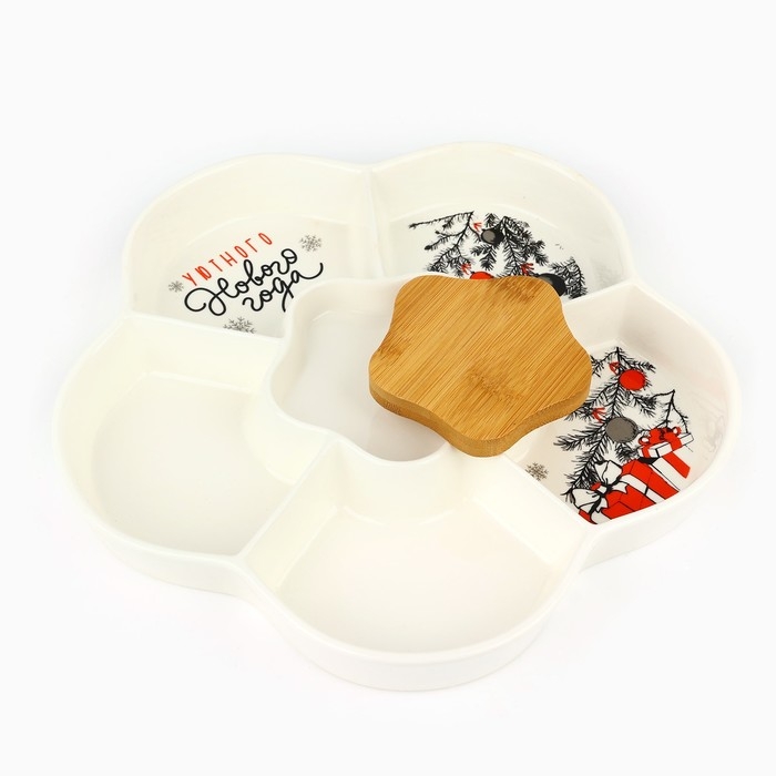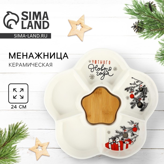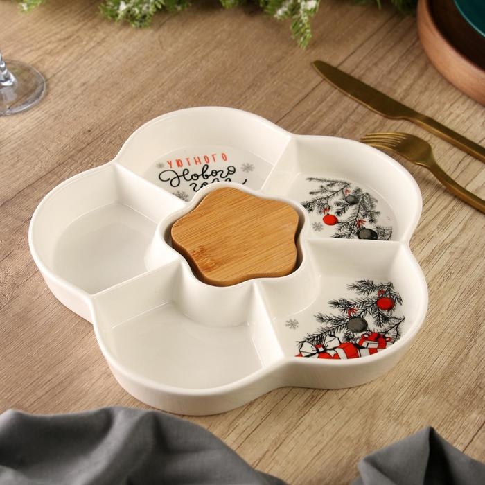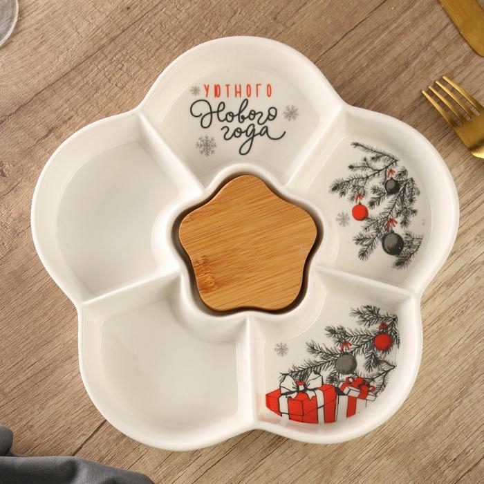 Менажница керамическая новогодняя «Уютного Нового года», 24 см, белая