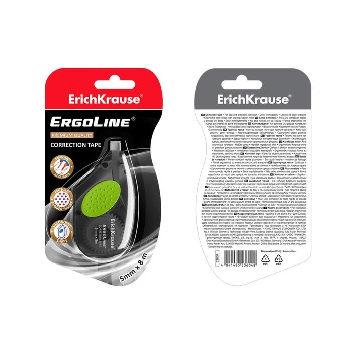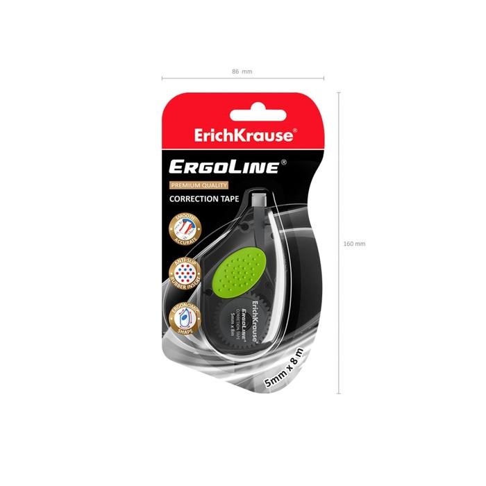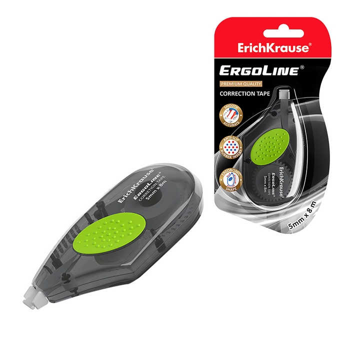 Корректирующая лента 5 мм х 8 м, ErichKrause ErgoLine, с резиновой вставкой, корпус серый, блистер