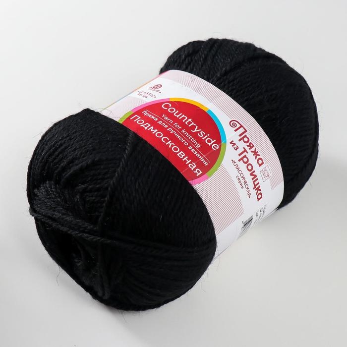Пряжа "Подмосковная" 50% шерсть, 50% акрил 250м/100гр (02 Черный)