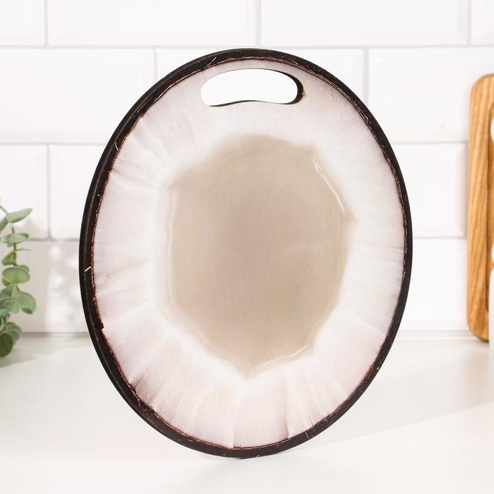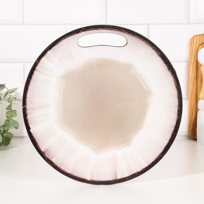 Доска разделочная и сервировочная круглая кухонная "Кокос в разрезе", 25,5 см