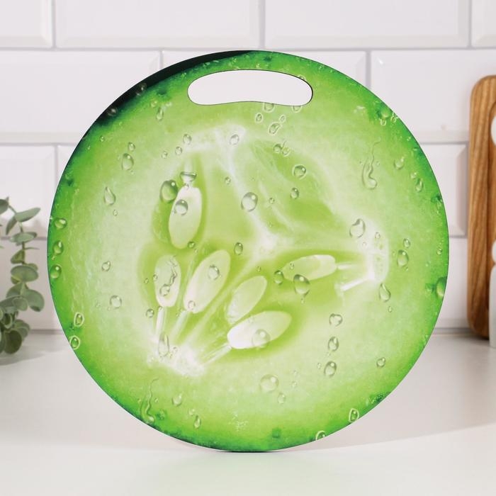 Доска разделочная и сервировочная круглая кухонная "Огурец в разрезе", 25,5 см