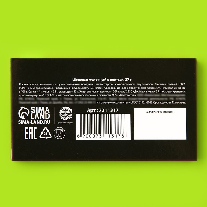 Шоколад молочный «От офисных страданий»: 27 г.