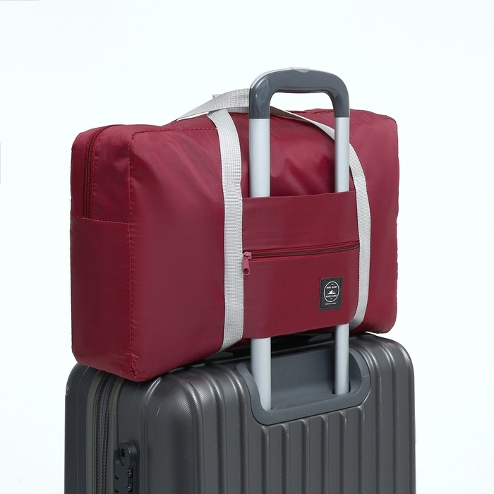 Сумка дорожная на молнии, наружный карман, держатель для чемодана, цвет бордовый