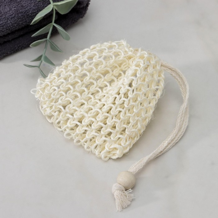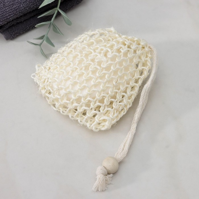 Мочалка-мешочек для вкладывания мыла Доляна, 10×10 см, бежевая