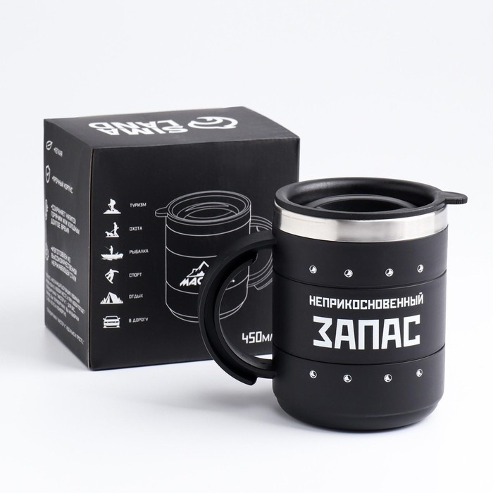 Термокружка "Мастер К" Поход "Запас", 450 мл, с ручкой, сохраняет тепло 2 ч, 12.5 х 10.5 см