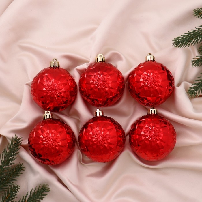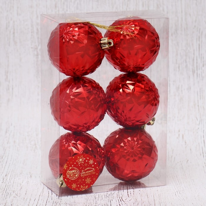 Ёлочные игрушки, шары новогодние , пластик, набор d-7 см, 6 шт "Калейдоскоп" красный