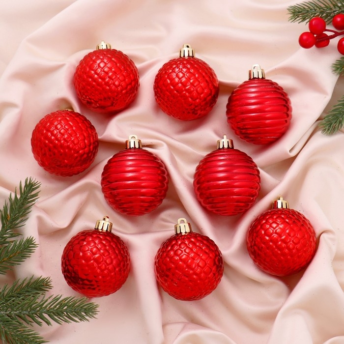 Ёлочные игрушки, шары новогодние , пластик, набор d-6 см, 9 шт "Нерея" красный
