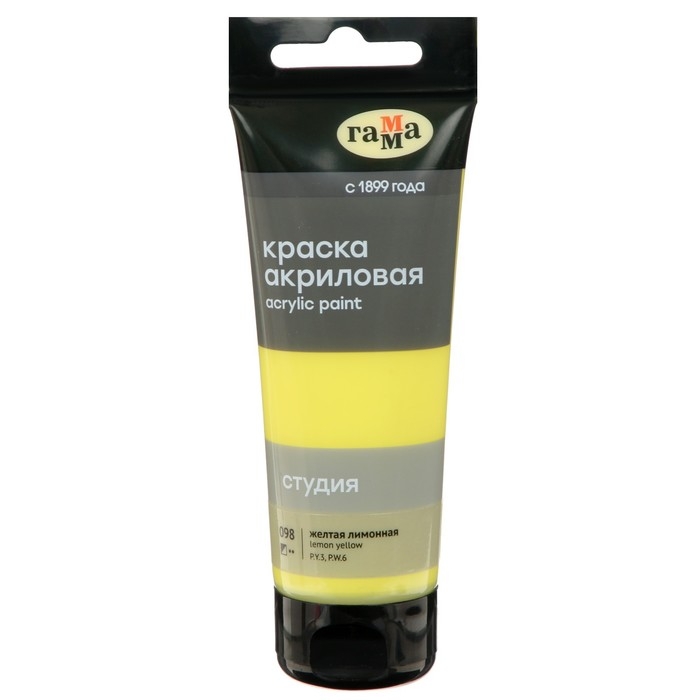 Краска акриловая художественная туба 75 мл, Гамма "Студия" №098 жёлтая лимонная