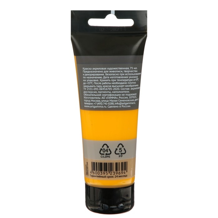 Краска акриловая художественная туба 75 мл, Гамма "Студия" №150 жёлтая тёмная