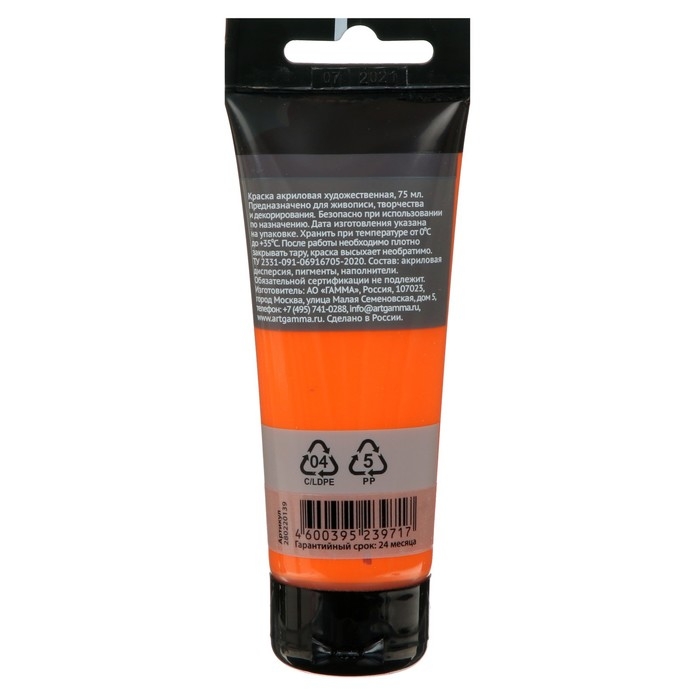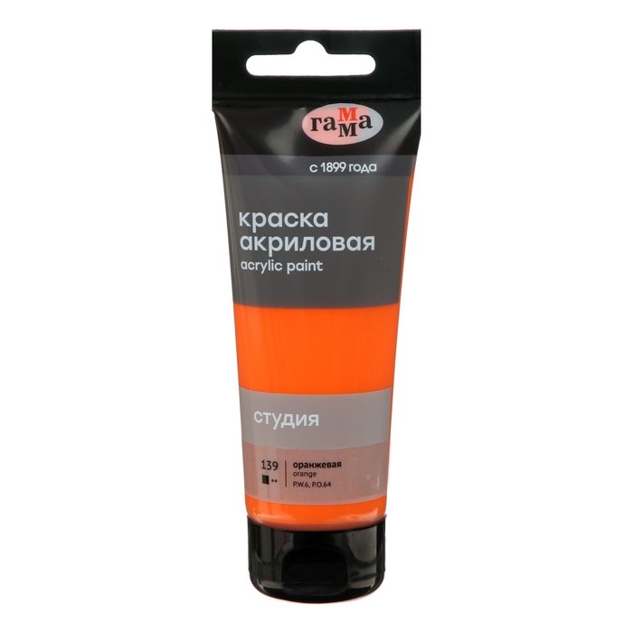 Краска акриловая художественная туба 75 мл, Гамма "Студия" №139 оранжевая