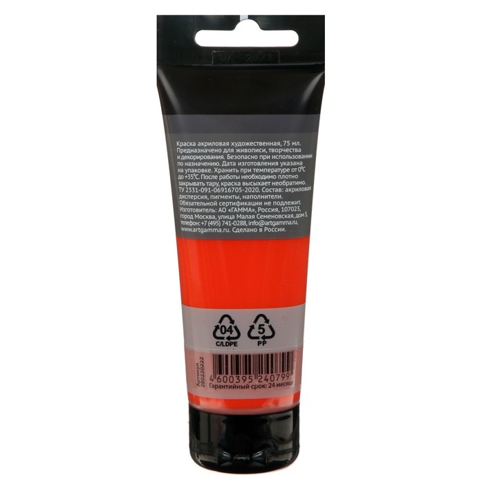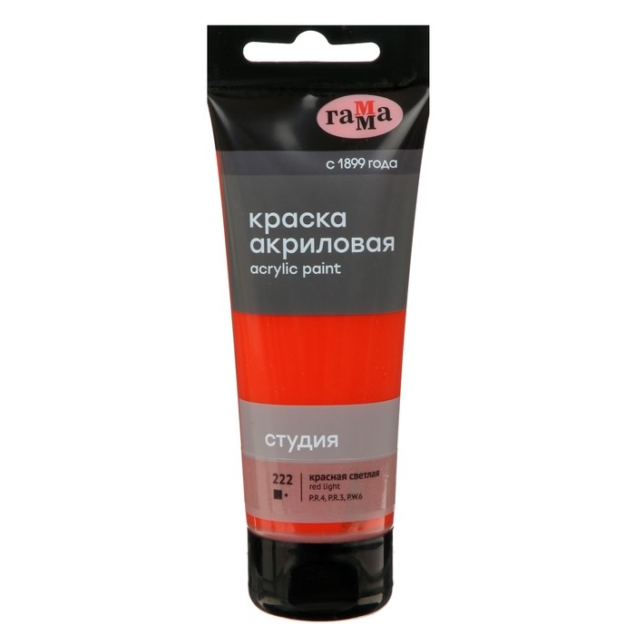 Краска акриловая художественная туба 75 мл, Гамма "Студия" №222 красная светлая