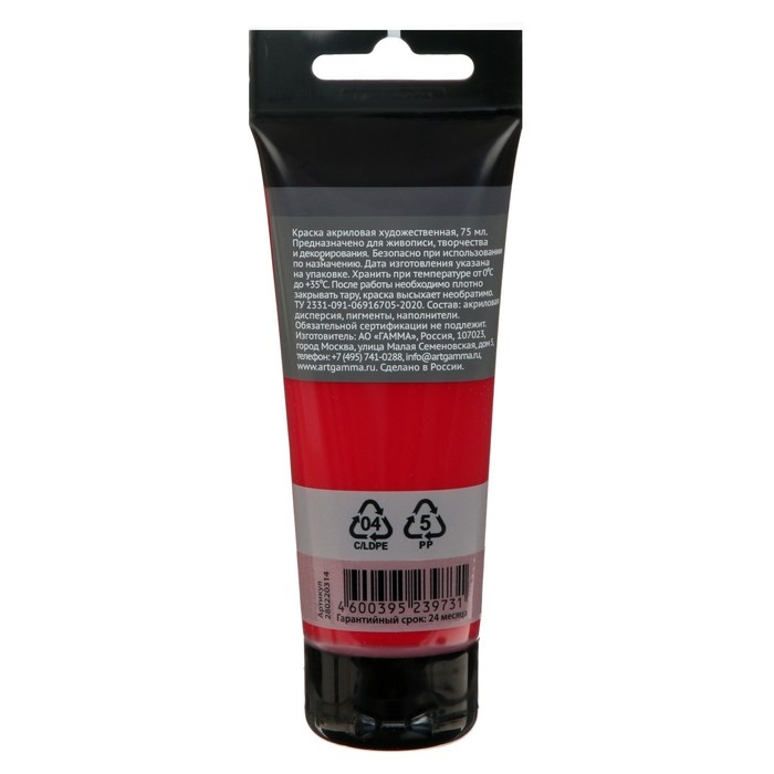 Новая акриловая краска «Студия» цвета красный краплак предназначена для художественно-живописных и декоративно-прикладных работ. Главные отличия: насыщенный цвет, густая консистенция, высокая адгезия, прочность красочного слоя. После высыхания краска становится глянцевой, практически не темнеет, специальная добавка позволяет максимально раскрыть красоту цвета. Художественный акрил прекрасно разносится, подходит для бумаги, картона, грунтованного холста, дерева, стекла, кожи, ткани. Время высыхания: от 10 минут до 1 часа в зависимости от толщины слоя. Прозрачный корпус тубы позволяет увидеть цвет краски, а удобная крышка флип-топ предотвращает высыхание. Объём тубы — 75 мл.