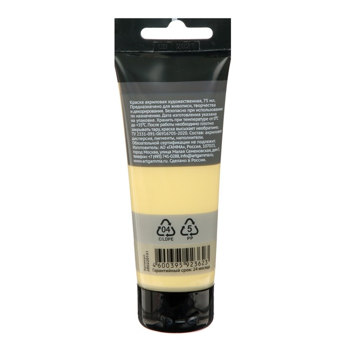 Краска акриловая художественная туба 75 мл, Гамма "Студия" №151 жёлтая палевая