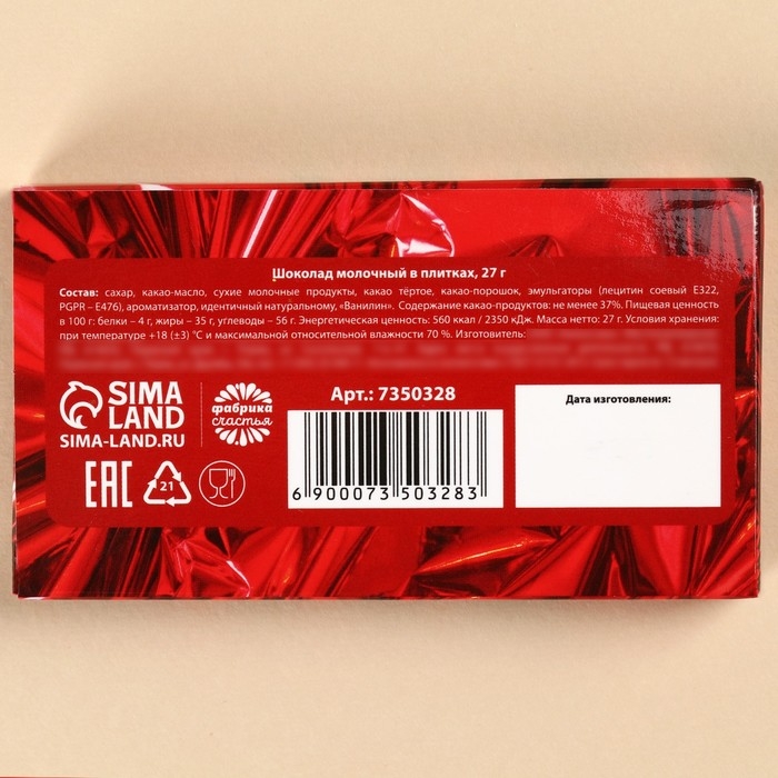 Состав: сухое цельное молоко, какао тёртое, масло какао, сухая молочная сыворотка, обезвоженный молочный жир, сахар, эмульгатор – соевый лецитин, ароматизатор, идентичный натуральному, «Ванилин».