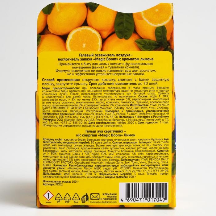 Освежитель воздуха Magic Boom, гелевый "Лимон" 100 г