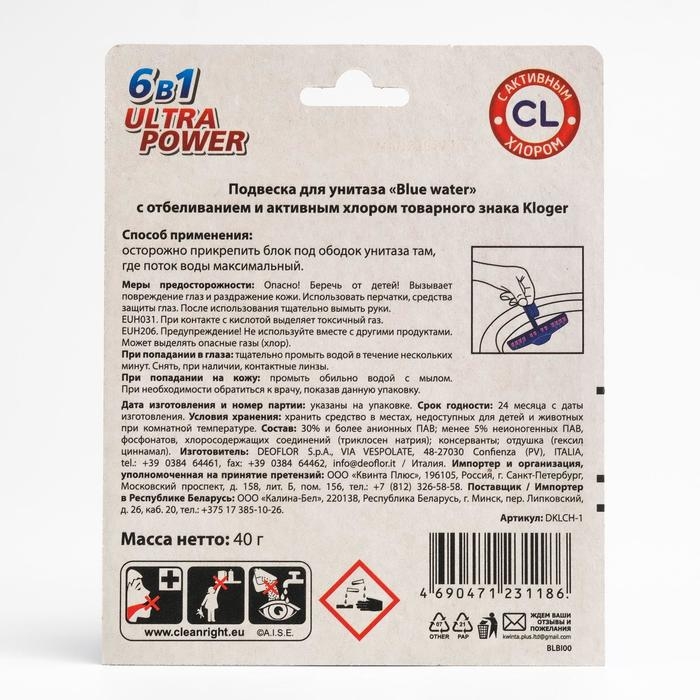 Чистящее средство для унитазов "Kloger Proff", подвеска 6 в 1, с хлором, 1 шт.