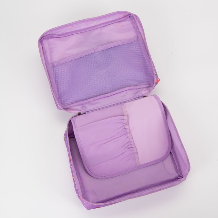 Косметичка, 2 отдела на молнии, цвет сиреневый