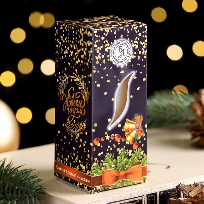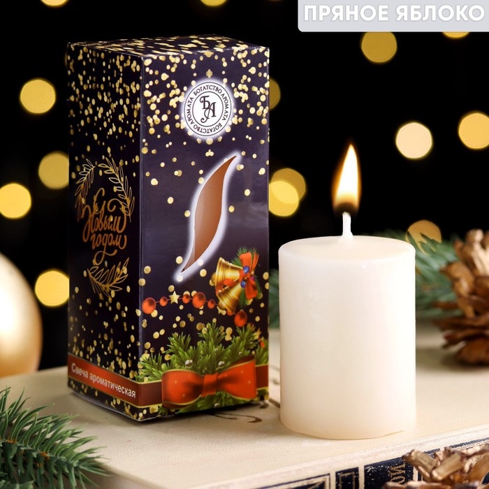 Свеча ароматическая новогодняя "Счастливого Нового года", 4×6 см, пряное яблоко, в коробке