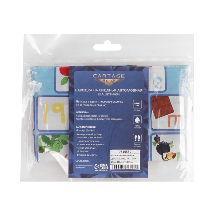 Накидка на сиденье автомобильное Cartage Составь слово, ПВХ, 60 х 45 см, европодвес