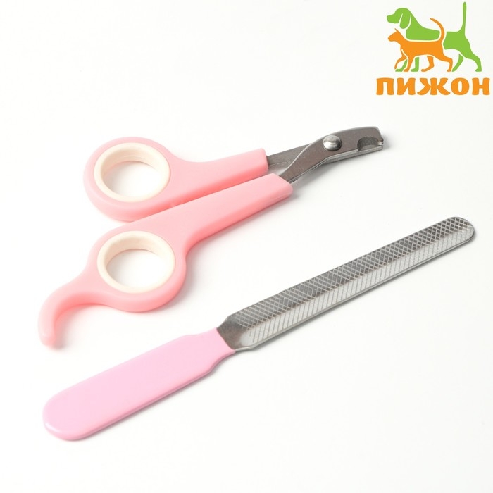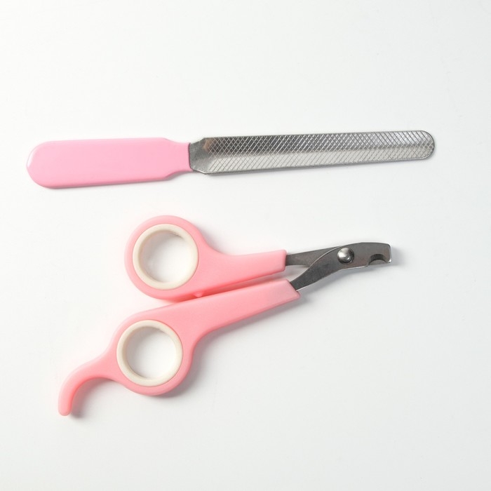 Набор по уходу за когтями: ножницы-когтерезы (отверстие 6 мм) и пилка, розовый с белым