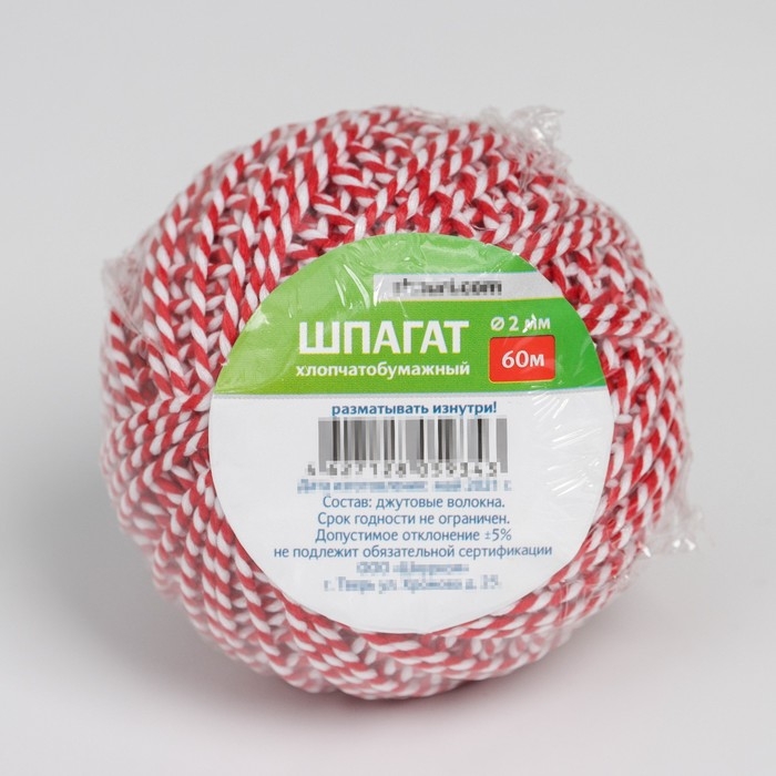 Шпагат хлопчатобумажный, 60 м, цвет МИКС