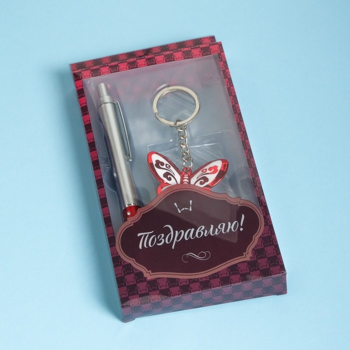 Набор подарочный 2в1 (ручка, брелок бабочка) микс