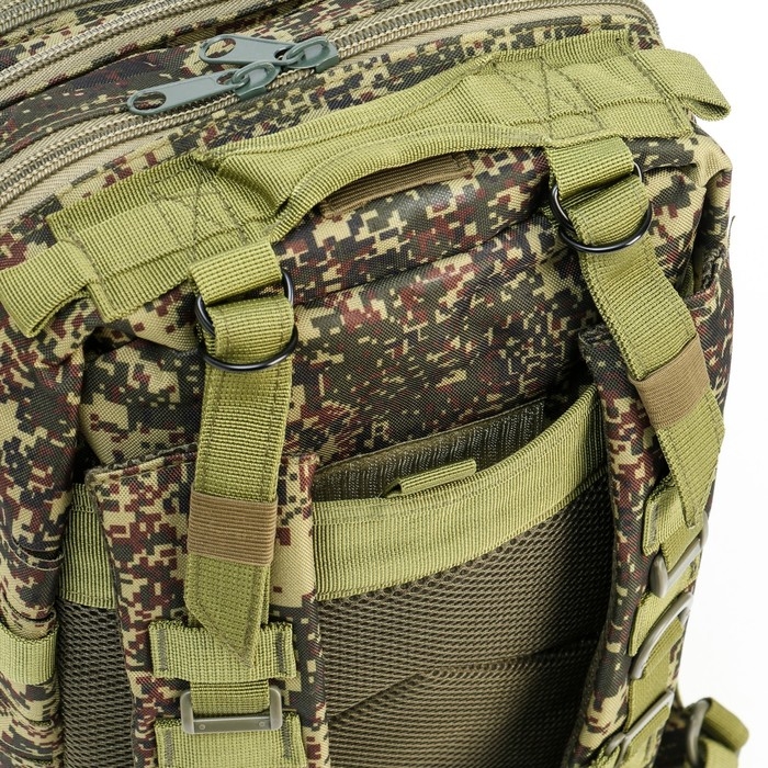 Многофункциональный рюкзак изготовлен из специальной износостойкой ткани, для самого широкого применения. Выполнен из влагостойкого материала - ткани оксфорд. Сумка, рюкзак идеально подходит для охоты, рыбалки, туризма и активного отдыха. Рюкзак камуфляжный армейский, тактический оснащен эргономичными лямками и системой MOLLE для навески дополнительного снаряжения. Мягкая спинка обеспечит комфорт в походных условиях и снизит нагрузку при переноске тяжестей по неровной горной местности.