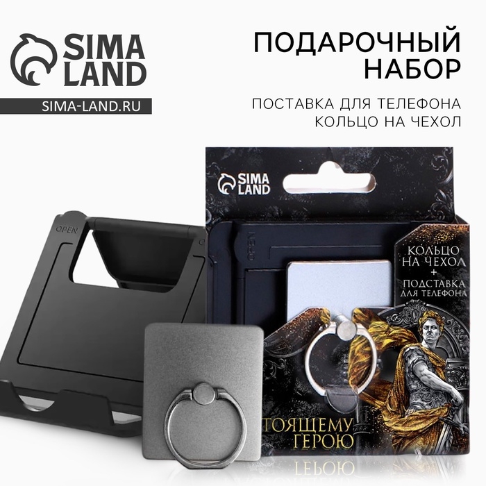 Подарочный набор «Настоящему герою»: подставка для телефона и кольцо на чехол