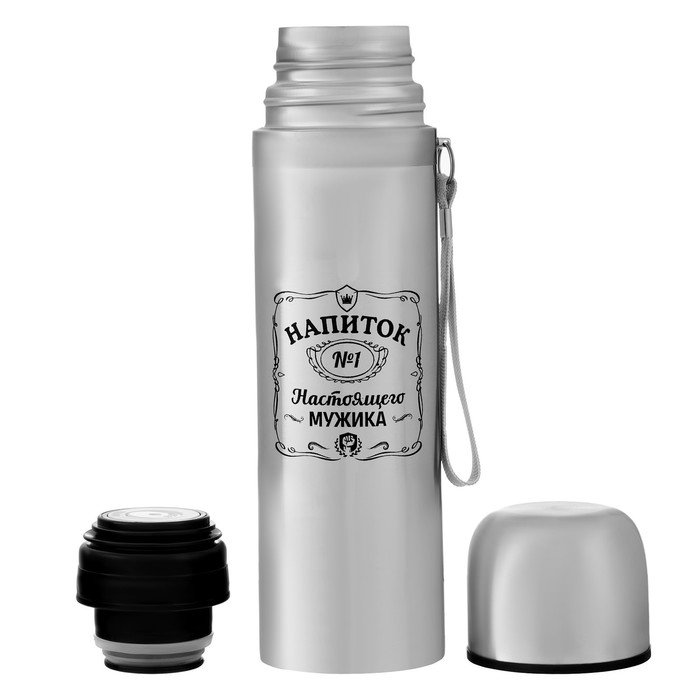 Термос для чая, кофе, 500 мл, Гильза "Напиток мужчины", с кружкой, с помпой, сохраняет тепло 10 ч, 6