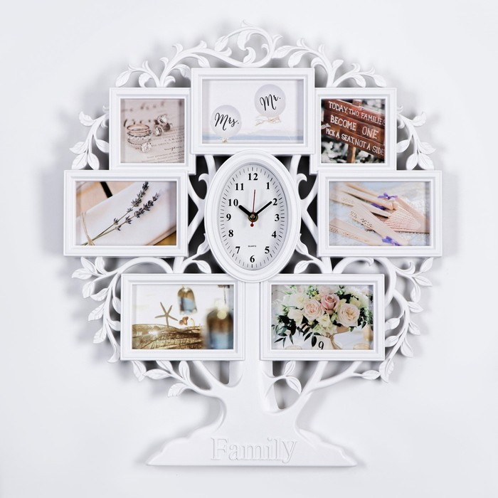 Часы настенные интерьерные, фоторамка - коллаж "Family", бесшумные, 51.5 х 60.5 см, АА