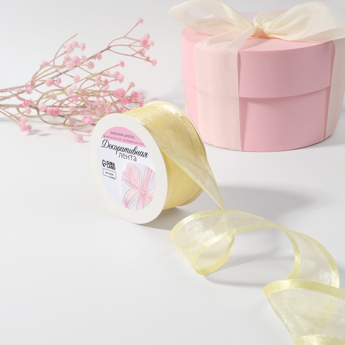 Лента декоративная, капроновая/атласная, 40 мм, 18 ± 1 м, цвет жёлтый