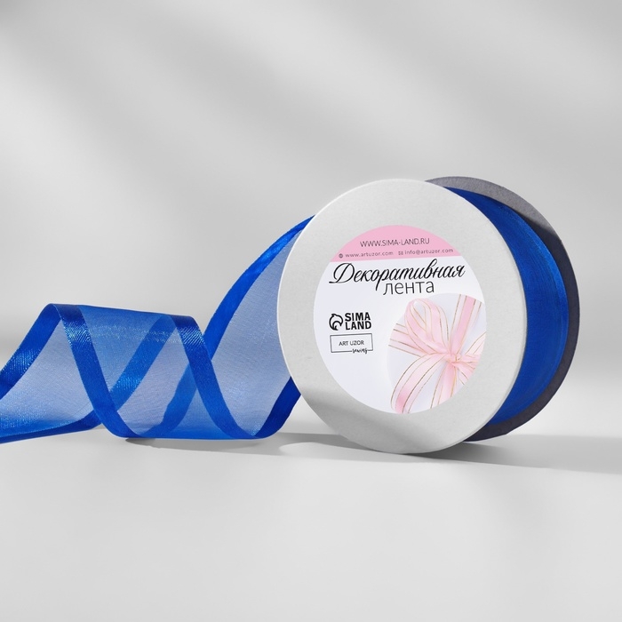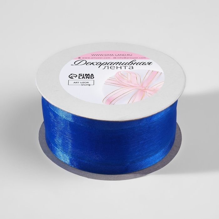 Лента декоративная, капроновая/атласная, 40 мм, 18 ± 1 м, цвет синий