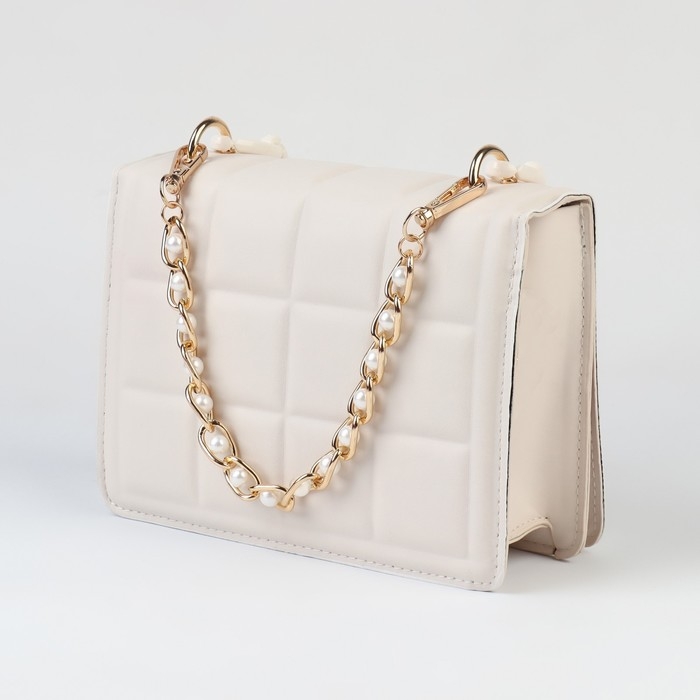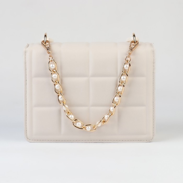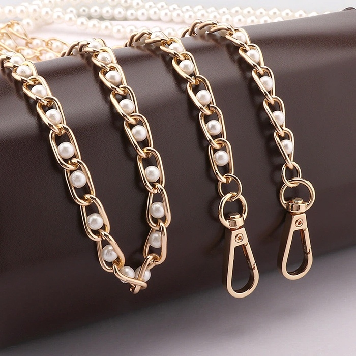 Цепочка с жемчугом для сумки, с карабинами, железная, d = 8 мм, 30 см, цвет золотой