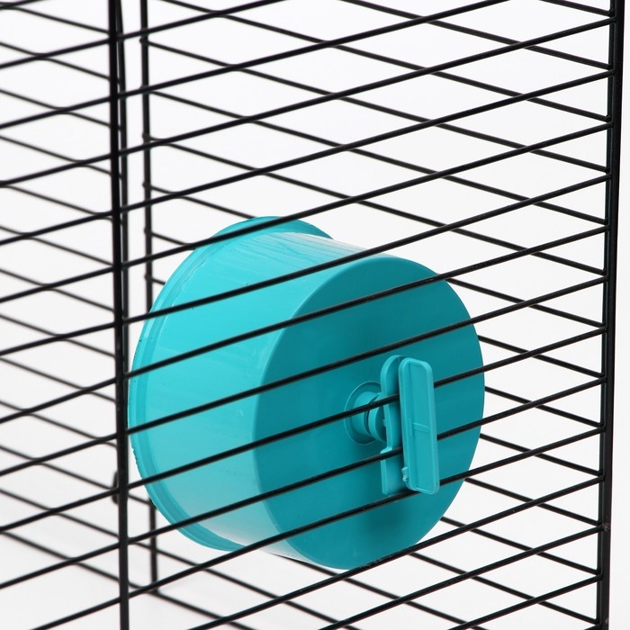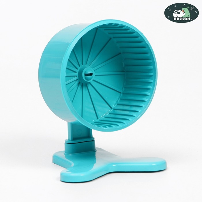 Колесо для грызунов полузакрытое пластиковое, с подставкой, 9 см, бирюзовое