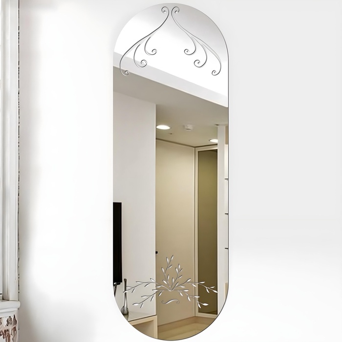 Зеркало настенное в форме вытянутого овала (размеры 45 х 15 см) – это стильный и оригинальный элемент декора, который подчеркнет индивидуальность вашего интерьера. Изготовленное из акрила толщиной 1 мм, оно отличается легкостью и прочностью, обеспечивая длительный срок службы.