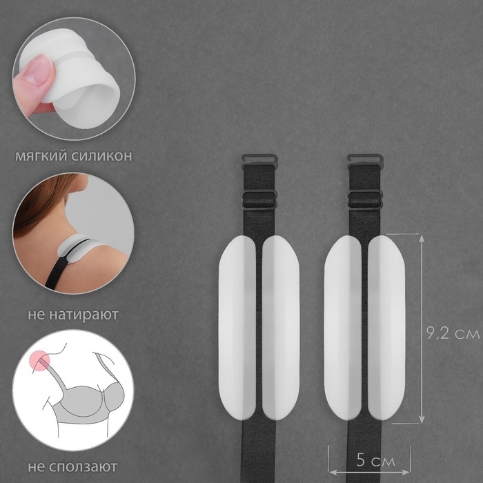 Подкладки предотвращают болезненное врезание бретелек в кожу, что особенно важно для обладательниц большого размера груди. Подушечки изготовлены из мягкого, приятного к телу материала, фиксируются в зоне плеча и позволяют смягчить давление на кожу.