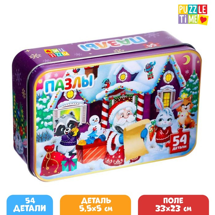 Пазлы в металлической коробке «Домик Дедушки Мороза», 54 детали