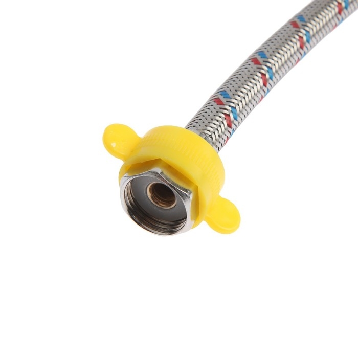 Один конец у подводки оснащен гайкой, а другой — штуцером, что обеспечивает универсальность в установке.