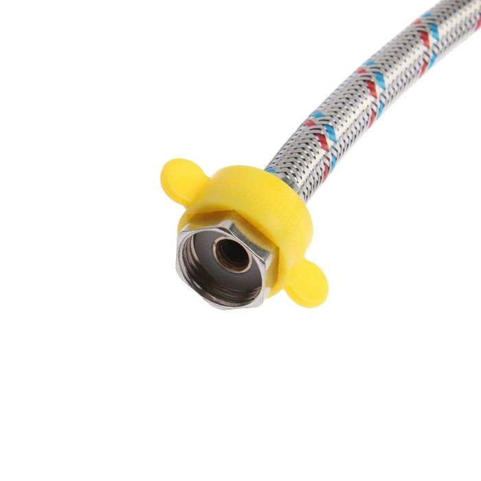 Один конец у подводки оснащен гайкой, а другой — штуцером, что обеспечивает универсальность в установке.