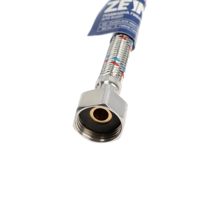 Подводка гибкая для воды ZEIN, 1/2", гайка-гайка, 80 см, с ключом для монтажа